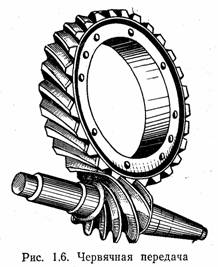 Червячную передачу образуют червяк и червячное колесо. Червяк — это винт с трапецеидальной резьбой. Он бывает однозаходный и многозаходный. Червячное колесо — цилиндрическое колесо, снабженное косыми зубьями, имеющими впадину на середине обода. Движение в червячной передаче осуществляется от червяка к колесу.