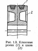 В строительных машинах наиболее распространены клиноре-менные передачи. Клиновые ремни изготавливают хлопчатобумажными прорезиненными в виде замкнутой бесконечной ленты семи различных типов: О, А, Б, В, Г, Д, Е, которые отличаются размерами поперечного сечения.