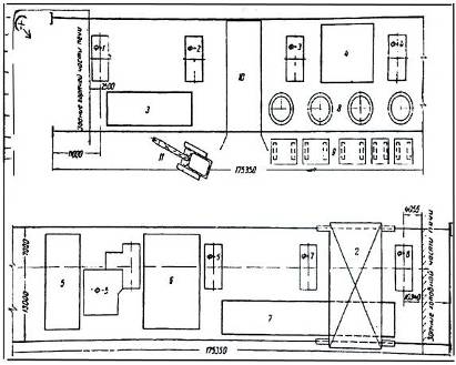 Механическая мастерская, площадка изготовления технологических металлоконструкций, контора, кладовая и другие временные сооружения монтажного участка находятся вне пределов монтажной площадки печи.