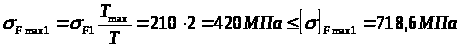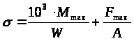 Напряжения в опасных сечениях вычисляем по формулам: