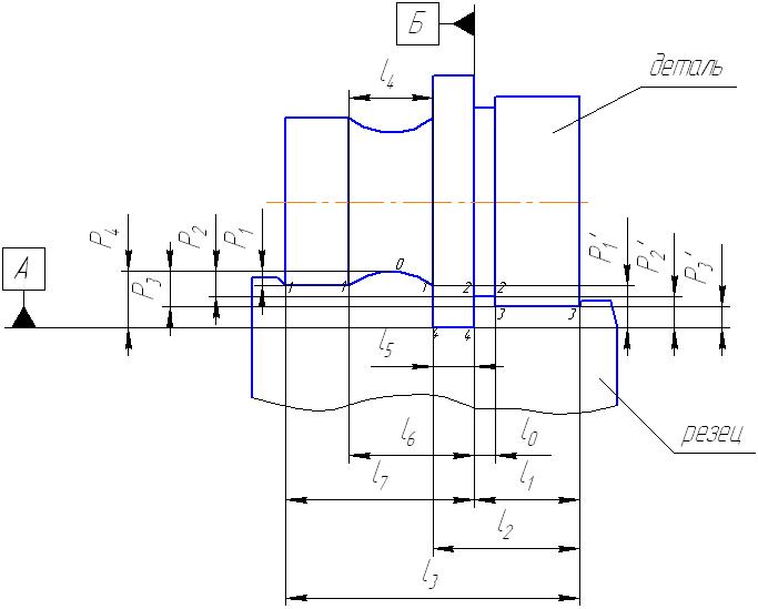 l>01> – образует на детали кромку, по которой настраивается резец для отрезки детали в размер, так же производит нарезку прутка на глубину t ≤ t>max> профиля детали и этим облегчает работу отрезного резца на последующей операции.