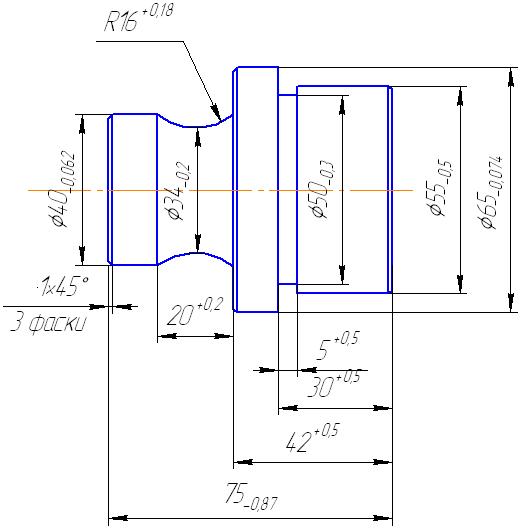 Обычно на профиле выбираются две поверхности, имеющие наибольшую протяженность – одна параллельна оси обрабатываемой детали, а другая – перпендикулярна ей. Допуски на размеры профиля резца принимаем равными 20% от поля допуска на соответствующие размеры профиля детали от установленных измерительных баз. Размеры профиля от измерительных баз в каждом случае определяются расчетом соответствующих размерных цепей.