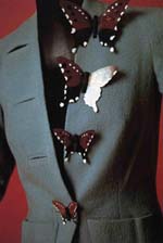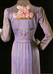 Эльза Скьяпарелли родилась в 1890 г. в Риме в образованной и богатой семье. Она получила хорошее образование, изучала живопись, скульптуру и литературу. Но моделированием одежды занялась не сразу, а только в 1927 году. Первой ее моделью был черный пуловер с вывязанным на груди белым бантом, рисунком имитирующем объемную форму. Таких рисунков прежде не было. Позднее, сотрудничая с С. Дали, она создала много сюрреалистических костюмов: классические костюмы с сюрреалистическими пуговицами (в виде рыбок или знаков Зодиака в коллекции «Астрология», фигурок гимнастов или цирковых лошадей в коллекции «Цирк», в виде пуль или кусочков сахара); необыкновенные детали (карманы в виде выдвижных ящиков, ваз с цветами); экстравагантные аксессуары, которые «притворялись» знакомыми предметами (платок в виде упаковки аспирина, сумки в виде яблока и телефона, шляпа в виде отбивной котлеты или чернильницы, перчатки, сшитые мехом наружу, перчатки с длинными когтями, перчатки е лисьими головками). К классическим моделям она моща предложить шокирующие украшения: прозрачное ожерелье с насекомыми, которые, как казалось, ползают вокруг шеи, напоминая муравьев на знаменитом «Сюрреалистическом бюсте» С.Дали. Иногда модели украшали сюрреалистические рисунки: напечатанные на шарфиках газетные тексты о Скяпарелли, роспись на «Платье с иллюзией вырванных клочьев», вышивка в виде женского профиля по эскизу Ж. Кокто или изображение гигантского омара по рисунку С. Дали. Сюрреалистическим был и флакон духов «Шокинг», который она создала вместе с художницей Леонор Финн. Этот флакон представлял собой стеклянный женский торс с букетом цветов вместо головы (мотив, тоже позаимствованный у Дали).