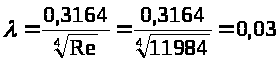 Т.к. Re >2300 то течение жидкости в трубопроводе турбулентное. Для турбулентного течения λ вычисляется по формуле: