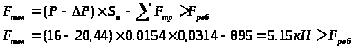 Проверяем толкающее усилие при температуре масла t=45оС: