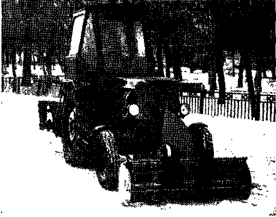 В прилотковой части дорог часто возникают плотные снежно-ледяные образования. Они нередко образуются под снежным валом и трудно поддаются механическому удалению из-за смерзания с покрытием. Поэтому перед складированием снега покрытие в прилотковой части обрабатывают химическими реагентами с повышенной нормой посыпки, равной 80-100 г/м2. После такой обработки, если на покрытии образовался уплотненный слой снега или льда, силы сцепления в нем будут настолько малы, что его нетрудно будет убрать механическим способом - обычным сгребанием. Уборка снега с проезжей части позволяет увеличить пропускную способность улиц и дорог, а также повысить безопасность движения транспорта и пешеходов. Очистку от снега тротуаров и садово-парковых дорожек производят малогабаритными универсальными машинами с плужно-щеточным (рис.5)