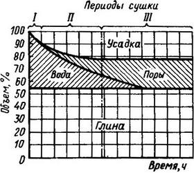Рис. 61. Диаграмма объемных изменений в глине при сушке (по Берри)