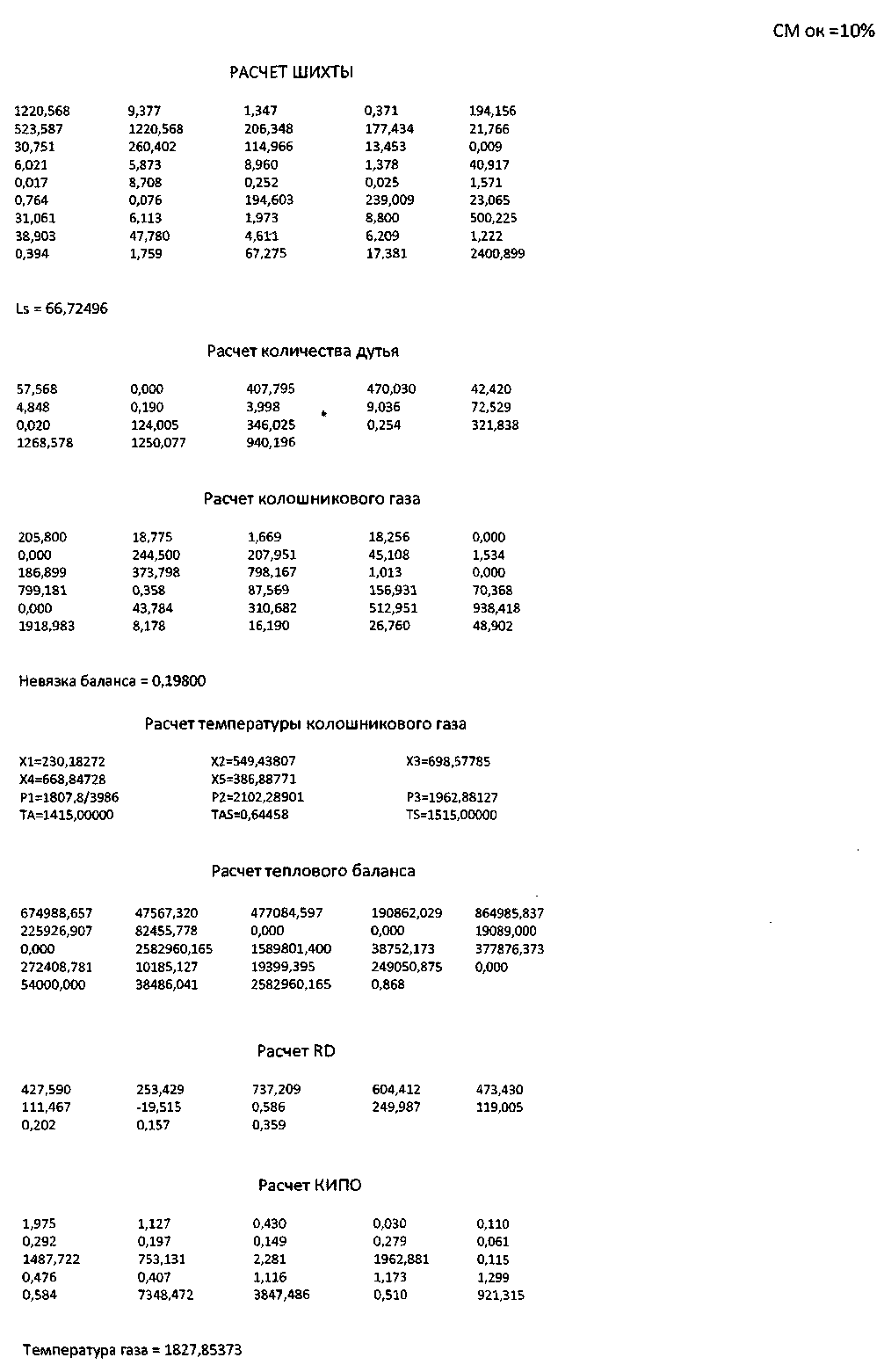 Максимальна міра металізації доменної шихти при роботі печі без вдування вуглеводнів і температурі дуття 900°Із складає 0,19. Вдування ж в піч замінників коксу дозволяє підвищити максимальну міру металізації до 0,56.