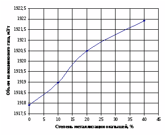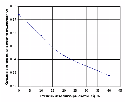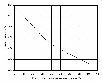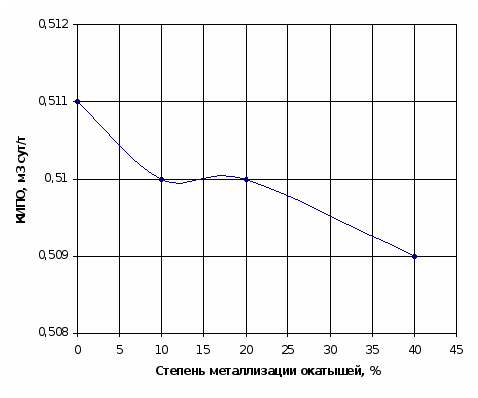 Оптимальною, з точки зору продуктивності і витрати коксу, являється міра металізації доменної шихти 0,85. При роботі доменної печі на 100% металізованої шихти працездатність її збільшується на 65% в порівнянні з роботою на шихті з 100% окислених окатишів [1].