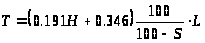 T= (0.625-0.003S-0.272H+ +0.00029S2+0.07H2) *L |