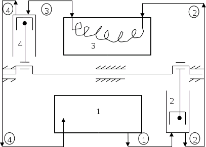 Где 1 – холодильная камера, 2 – компрессор, 3 – теплообменник, 4 – расширительный цилиндр