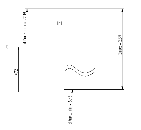 Для меншого діаметра втулки O72Н11 (+0,19; 0):