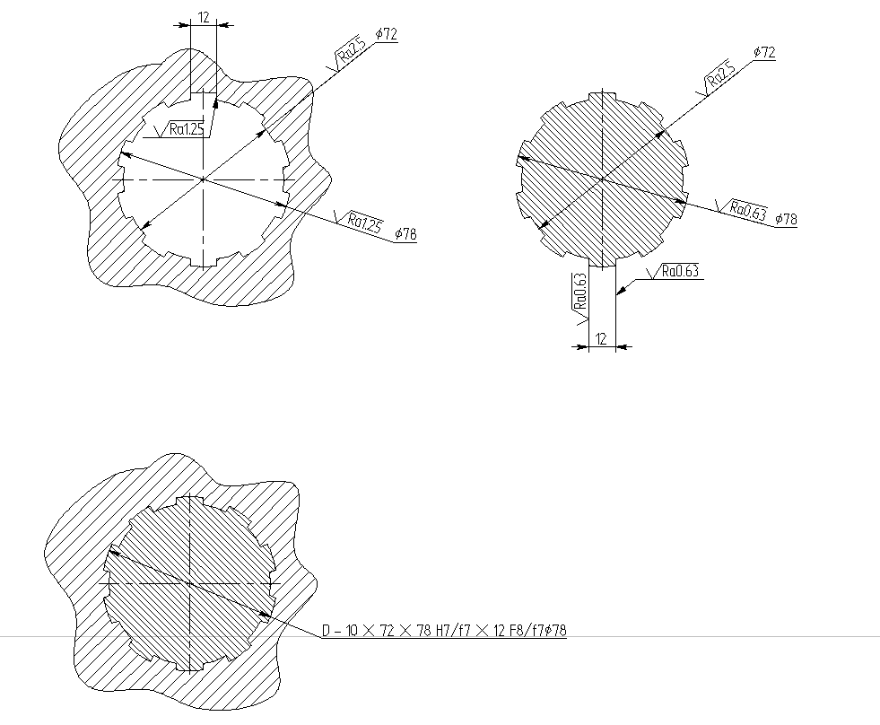 Для сполуки вала й втулки по бічній поверхні зубів 12F8/f7: