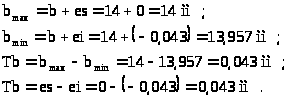 3 Визначаємо граничні розміри й допуск розміру ширини шпонки 14h9 (0; -0,043):
