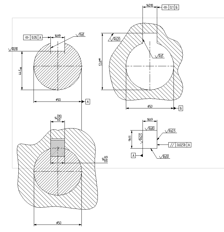 Для складання важливо правильне розташування канавок (пазів) на валу й у втулці. Тому призначаються такі норми, як допуски симетричності осі канавок (пазів) щодо осі вала й щодо осі отвору втулки й допуск паралельності площини осі канавки до осі вала або отвору.