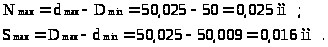 Розраховуємо значення граничних розмірів деталей сполуки O50H7/m6:
