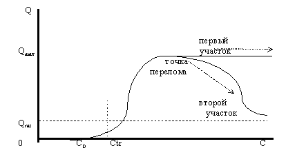 Полученный результат требует объяснений и обоснования. Следует найти ответ на вопрос: в каком случае может существовать первый участок кривой, а в каком будет существовать второй участок?