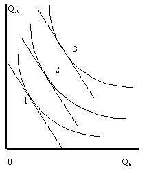 Рисунок 1. Кривые безразличия и бюджетные линии