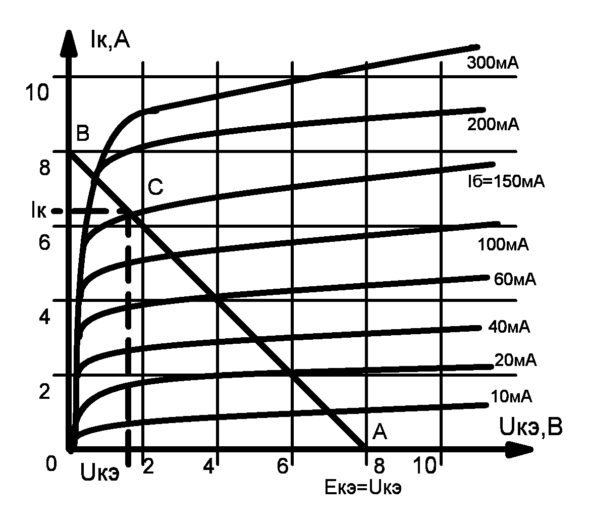 3 На выходных характеристиках транзистора определяем рабочую точку
