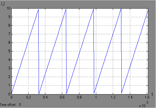 Блоки “2” и “3” формируют возрастающую во времени функцию, наклон которой может регулироваться изменением коэффициента блока “3”. В нашем случае коэффициент должен быть равным амплитуде пилообразных колебаний.
