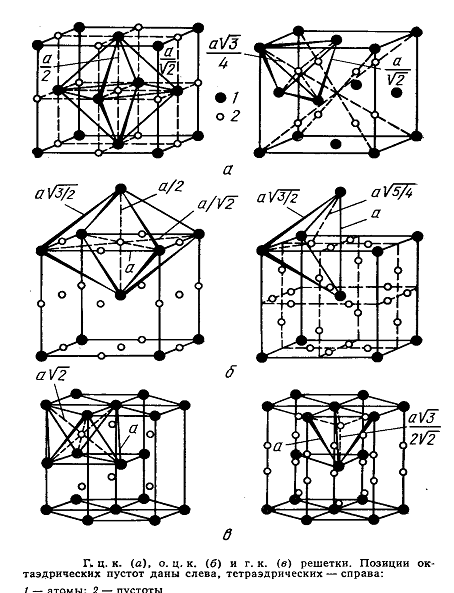 При внедрении в междоузлие решётки атомов других элементов эти напряжение оказываются тем больше, чем значение разницы между размерами атомов внутренние и данного метала.