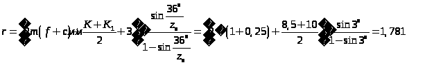 Передний угол резца γ и задний угол α задаются в наиболее выступающей (базовой) точке резца. Величины углов α и γ рекомендуется выбирать из ряда значений: 5, 8, 10, 15, 20, 25. Принимаем γ=25 градусов. Для призматических резцов чаще всего принимают следующие задние углы: α=8-15 градусов. Принимаем α=8 градусов. Следует иметь в виду, что задние углы переменны в различных точках лезвия, к тому же в сечении, нормальном к проекции лезвия на основную плоскость, они могут быть на некоторых участках лезвия намного меньше номинального значения. Поэтому необходимо производить проверку минимальной величины заднего угла по формуле: