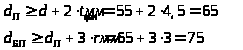 Предварительные значения диаметров (мм) различных участков стальных валов редуктора определяют по формулам: