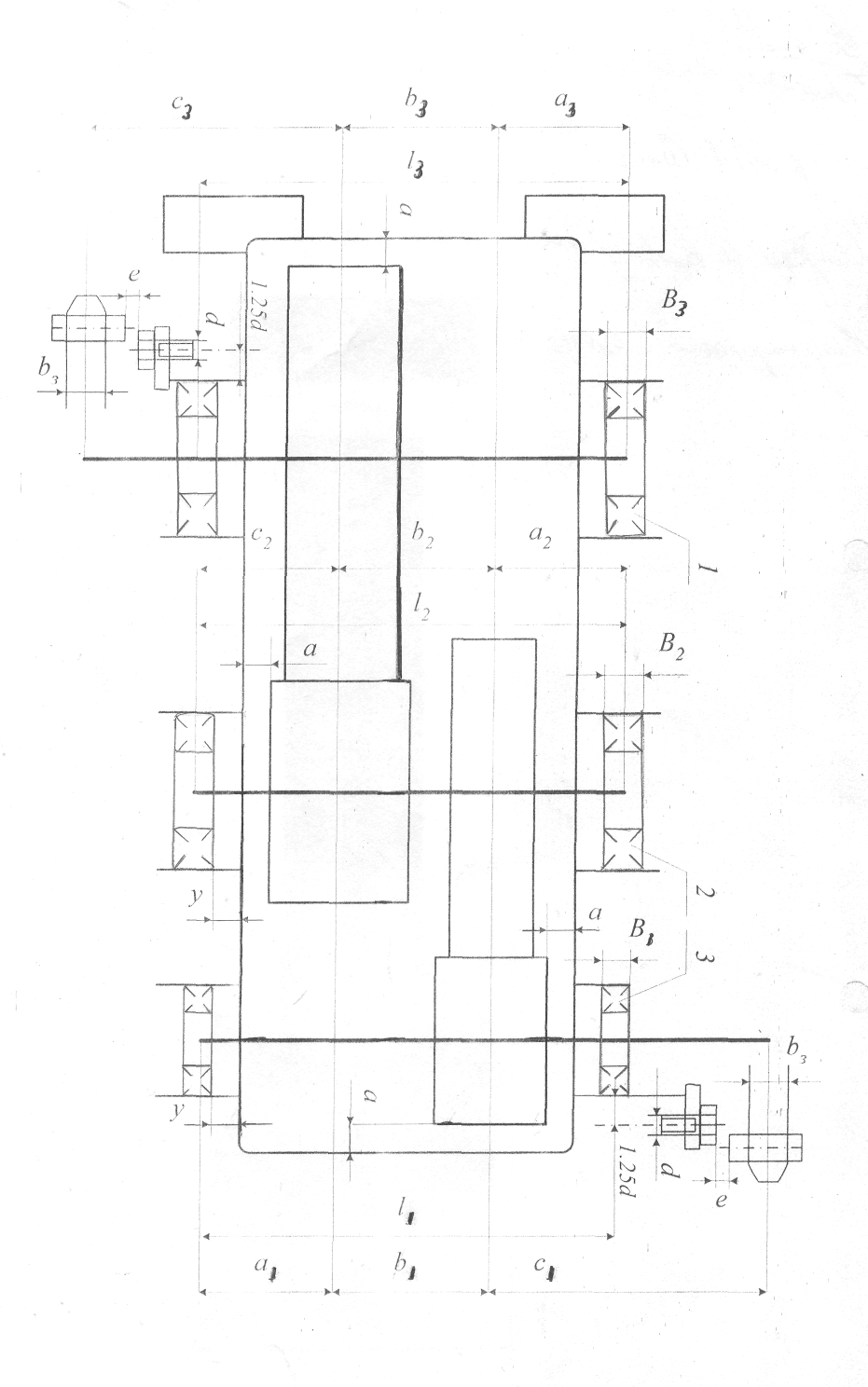 Рисунок 2. Эскизная компоновка вертикального редуктора