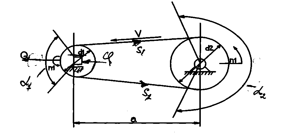 На рисунке 4 приведена расчетная схема клиноременной передачи.