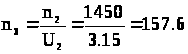 Частота вращения двигателя исходя из приближенного общего передаточного отношения: