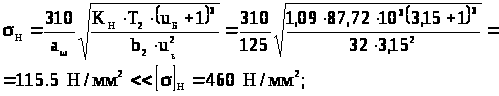1. Материалы зубчатых колес для тихоходной передачи выбраны верно, поскольку при проверочном расчете по контактным напряжениям выполняется условие: