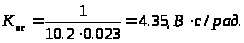 Коэффициент передачи датчика отрицательной обратной связи по скорости рассчитывается как отношение напряжение задания на соответствующее значение максимальной скорости: