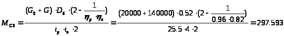 Аналогично, момент на валу двигателя при подъеме грузозахватывающего устройства: