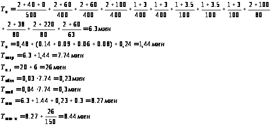 К>он> – число станков, обслуживаемых наладчиком за смену: К>он>=7;
