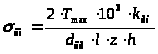Напряжения сечении: