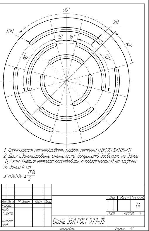 Балансировка диска. Диск балансируют статически. Согласно чертежу допустимый дисбаланс не более 0,2 кгм.