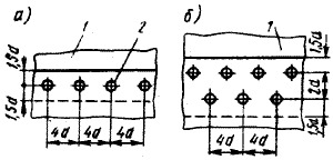 Расстояние от центра до края склёпываемых листов должно составлять 1,5d. Диаметр отверстия должен быть больше диаметра заклёпки.