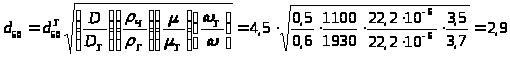 7. Приняв по таблице 2.8 два параметра, характеризующих эффективность выбранного типа циклона, определяем значение параметра d>50 >при рабочих условиях (диаметр циклона, скорость потока, плотность пыли, динамическая вязкость газа) по уравнению: