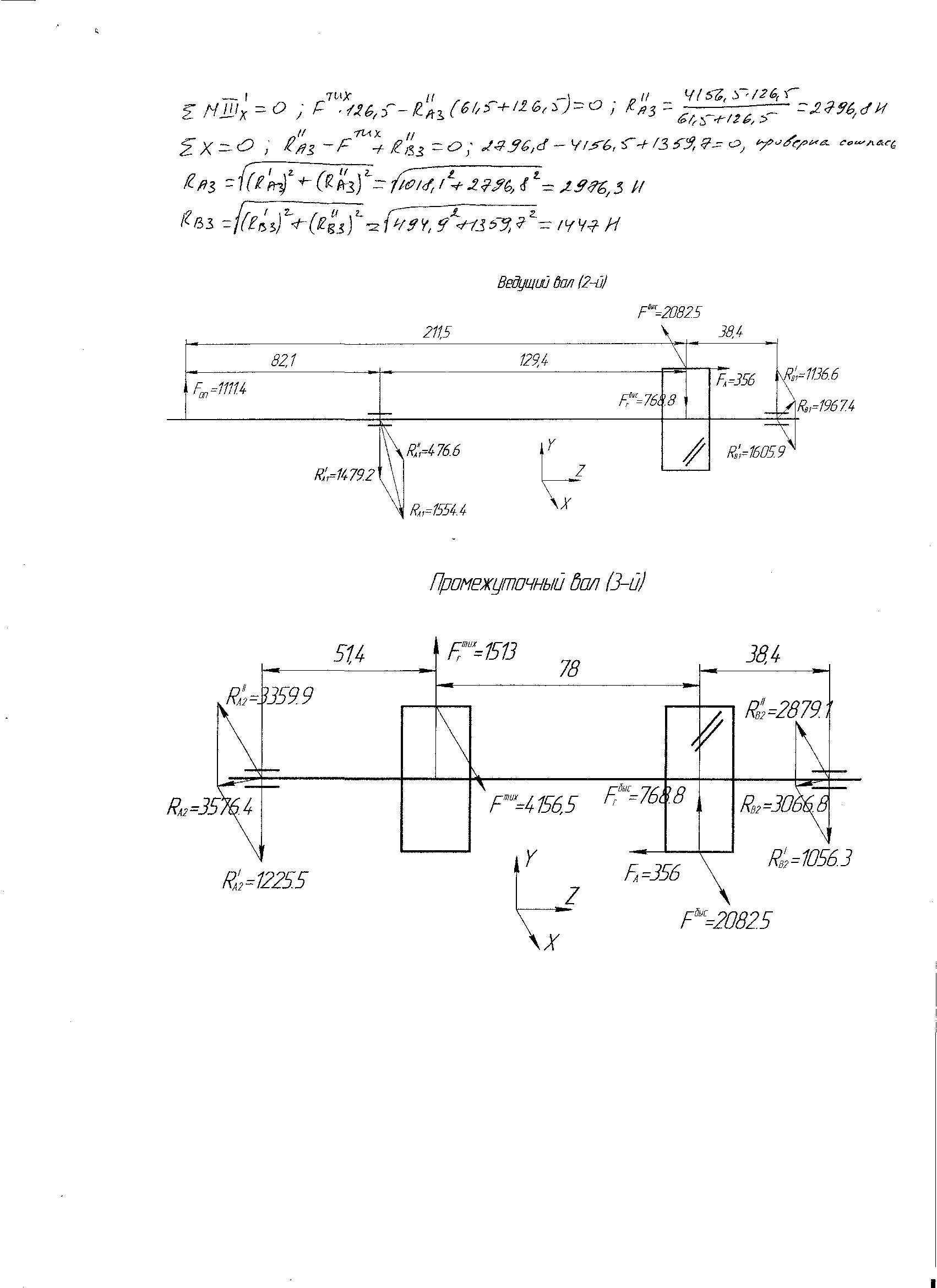 - промежуточный вал: надевают распорную втулку, закладывают шпонки и напрессовывают шестерню и колесо; затем надевают распорную втулку, устанавливают подшипники, предварительно нагретые в масле;