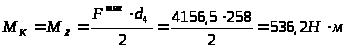 T>4> = 516,69 Нм – вращающий момент на зубчатом колесе;