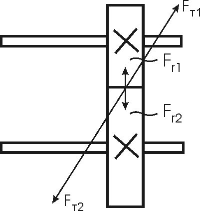При выборе шарикоподшипников исходят из усилий, возникающих при зацеплении зубчатых колес. Для цилиндрической передачи это усилие: