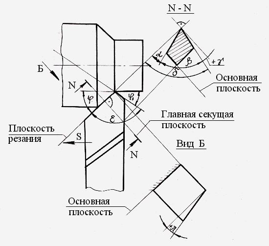 Главный угол в плане φ = 30 ÷ 60; принимаем φ = 600