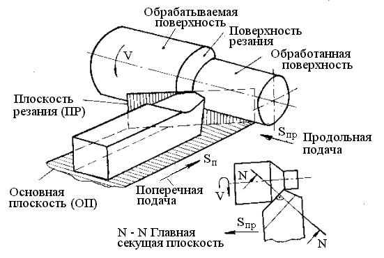 1. Глубина резания (t) – величина срезаемого слоя за один проход, измеренная в направлении, перпендикулярном. Глубина резания всегда перпендикулярна направлению движения подачи.