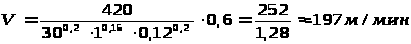 Зависимость (1) приближенно отражает некоторый диапазон изменения скорости резания. В этом легко убедиться, сравнивая формулу с экспериментальными значениями