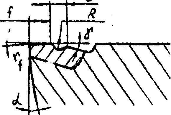 Размер радиусной (стружкоотводящей) лунки В = 2 ÷ 2,5 мм; глубина лунки h = 0,1 ÷ 0,15 мм; радиус лунки R = 4 ÷ 6 мм. Так как при получистовой обработке снимается стружка меньшего сечения, чем при черновой, принимаем наименьшие значения размеров лунки: В = 2 мм; h = 0,1 мм; R = 4 мм