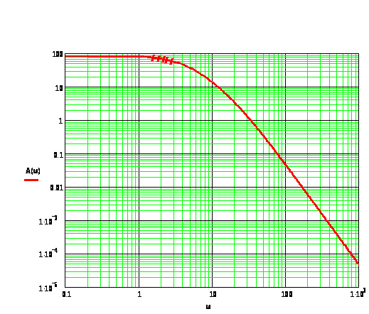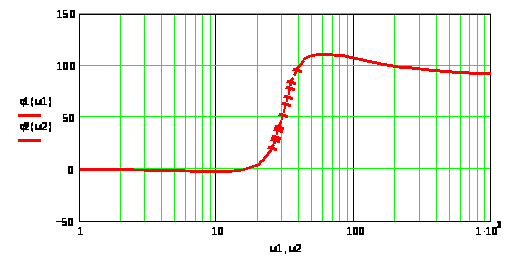в которую подставляем значения второй и третьей частоты излома (>1> = 25 с-1 и и произвольной частоты (для удобства построения я взял частоту = 100 с-1).