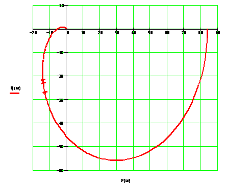 Так как точка с координатами [-1; j0] находится под графиком, то по критерию Найквиста система считается неустойчивой.