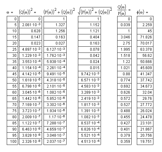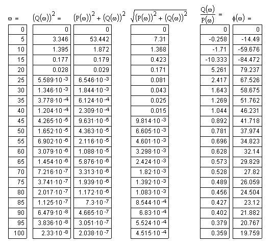 2.1 Составить таблицу расчётных значений для построения графиков частотных характеристик.
