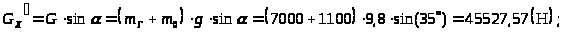Как видно из рисунка проекции силы G можно рассчитать по выражениям: