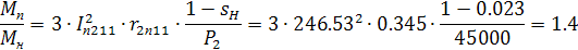 кратность максимально момента к номинальному: М>m>/М>ном>=2;